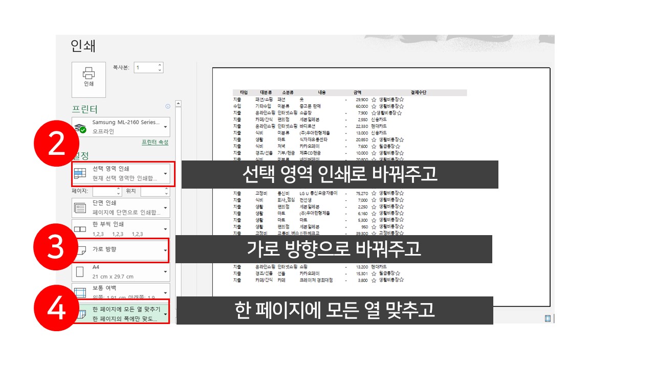 3. 가로로 깔끔하고 잘보이게 인쇄하는 법
