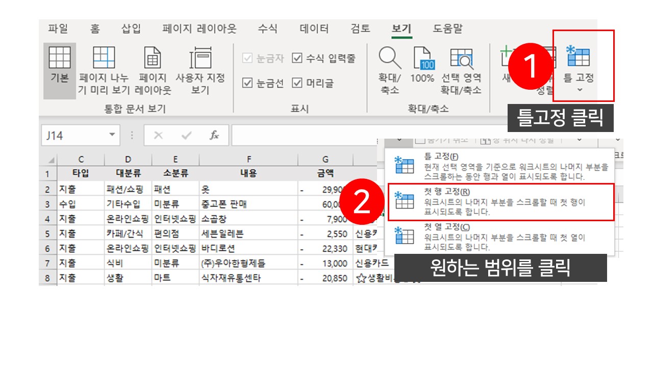 엑셀 데이터가 많아지만, 우린 틀고정하고 싶은 욕구를 느끼게 됩니다.